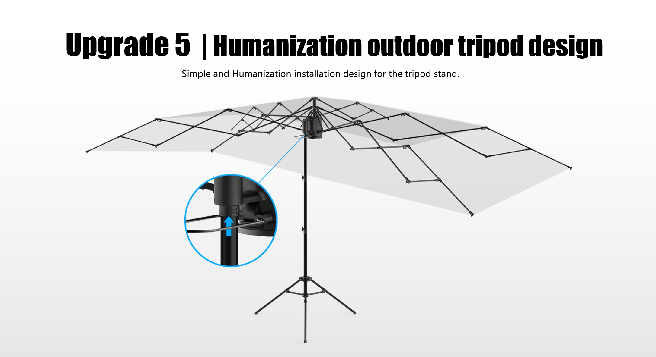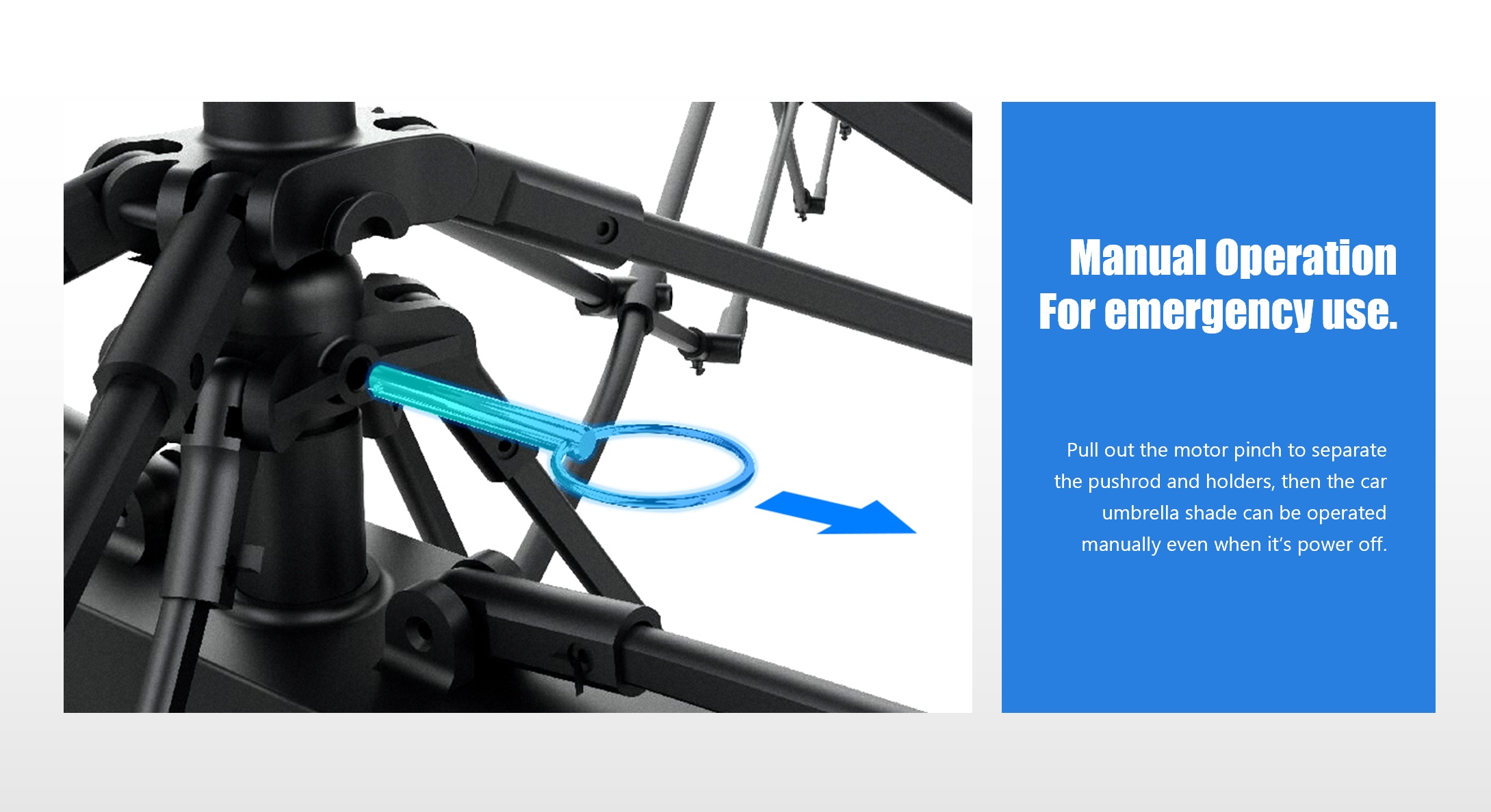 Εκτός από την αυτόματη ανύψωση και κατέβασμα μέσω τηλεχειριστηρίου, μπορεί επίσης να αλλάξει σε χειροκίνητη λειτουργία ανά πάσα στιγμή για να ταιριάζει σε διαφορετικές προτιμήσεις. Ο βελτιστοποιημένος κινητήρας καταναλώνει λιγότερη ενέργεια και είναι πιο φιλικός προς τις μπαταρίες. Η ειδικά σχεδιασμένη δομή τρίποδου εξωτερικού χώρου εξασφαλίζει πιο σταθερή εγκατάσταση και επιτρέπει τη γρήγορη εγκατάσταση εκτός του οχήματος, διευκολύνοντας τη δημιουργία ενός προσωρινού σκίαστρου για εκδρομές κατασκήνωσης.