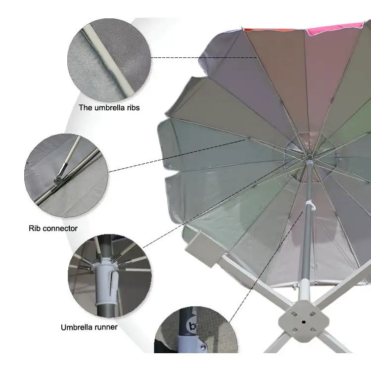 Ομπρέλα παραλίας για την αποφυγή του άμεσου ηλιακού φωτός στην παραλία στο μεγάλο σκίαστρο. Ο σχεδιασμός του Beach Umbrella βασίζεται στην ομπρέλα του αίθριου και στην εξέλιξη. Αλλά τώρα με την ανάπτυξη ενός μινιμαλιστικού στυλ εξάπλωσης και εμπορικής βιομηχανίας αναψυχής, έχει χρησιμοποιηθεί ευρέως για Ομπρέλες παραλίας στην παραλία, όμορφο σχήμα, αποτελεσματικό εφέ σκίασης, φθηνή εξωτερική εμπορική διαφήμιση ευνοεί περισσότερο την προώθηση της εποχής του. Η ομπρέλα παραλίας είναι βολική στη μετακίνηση, απλή εγκατάσταση, χαμηλό κόστος, μπορεί να είναι πλεονεκτήματα ανακοίνωσης λογότυπου.